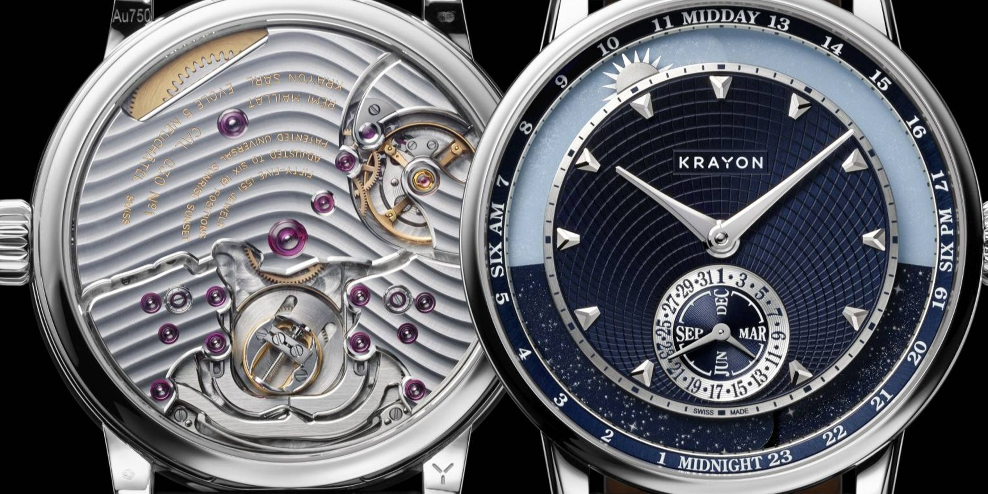 Rémi Maillat’s newest opus is faithful to the concept of singular measurement of time. As an evolution of Krayon’s staple creation Everywhere, Anywhere indicates the length of day and the time at which the sun rises and sets. Anywhere is a personalised ephemeris, a marvellous synthesis of mathematics, aesthetics and watchmaking artistry, with a truly philosophical dimension.
