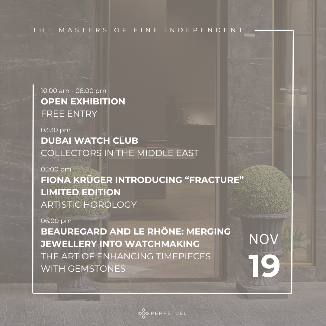 Step into Perpétuel Gallery in Dubai and let the world of horology unfold before your eyes. Experience the magic of time captured in exquisite craftsmanship, and join us in celebrating the enduring legacy of independent and fine watchmaking.