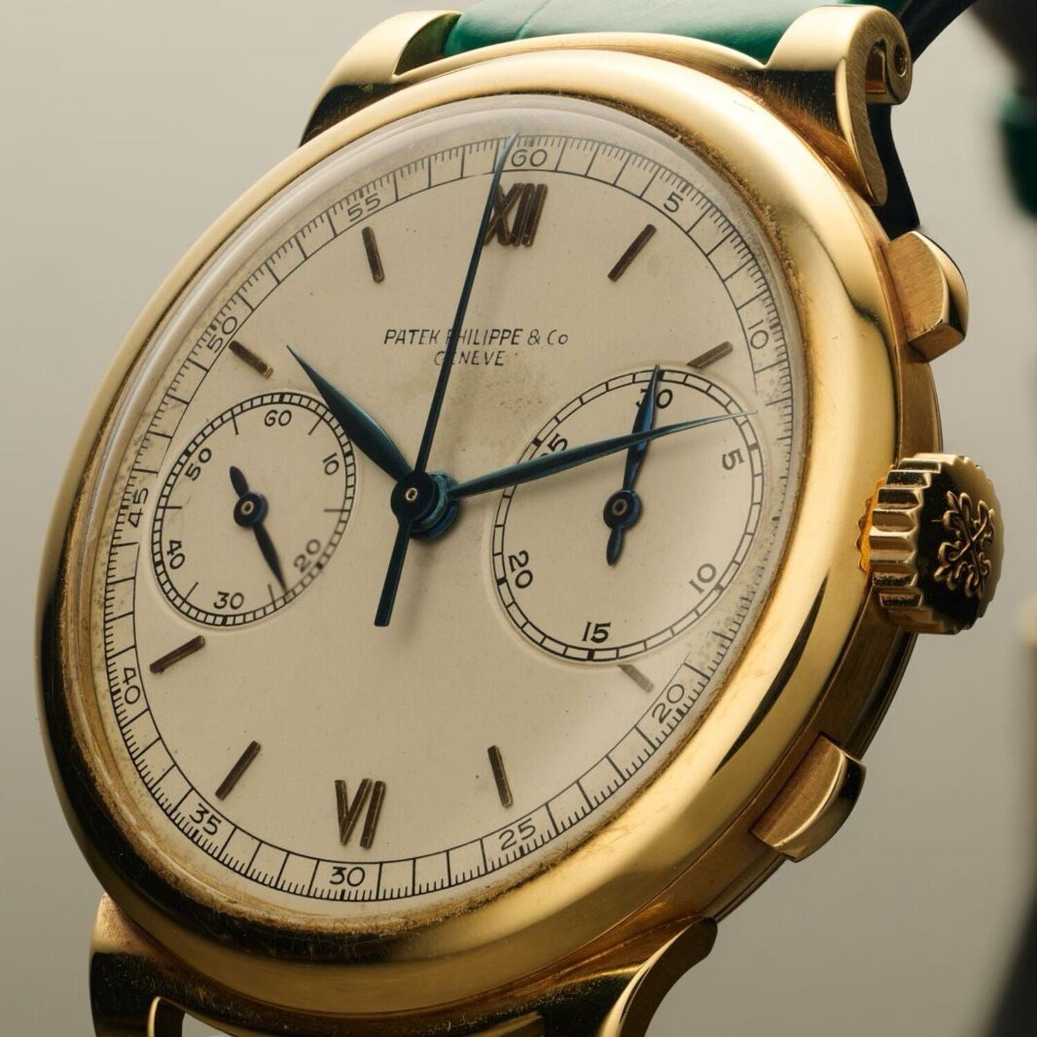 Royal blue two-piece construction, lacquered guilloché center with circular brushed outer ring